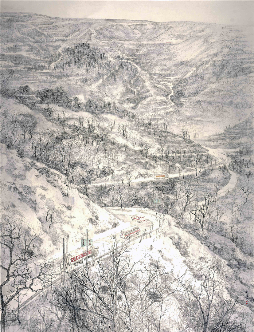 2020年,作品《逆行风雪路》入选中国美术家协会主办的第二届“公望富春”·中国山水画作品展;